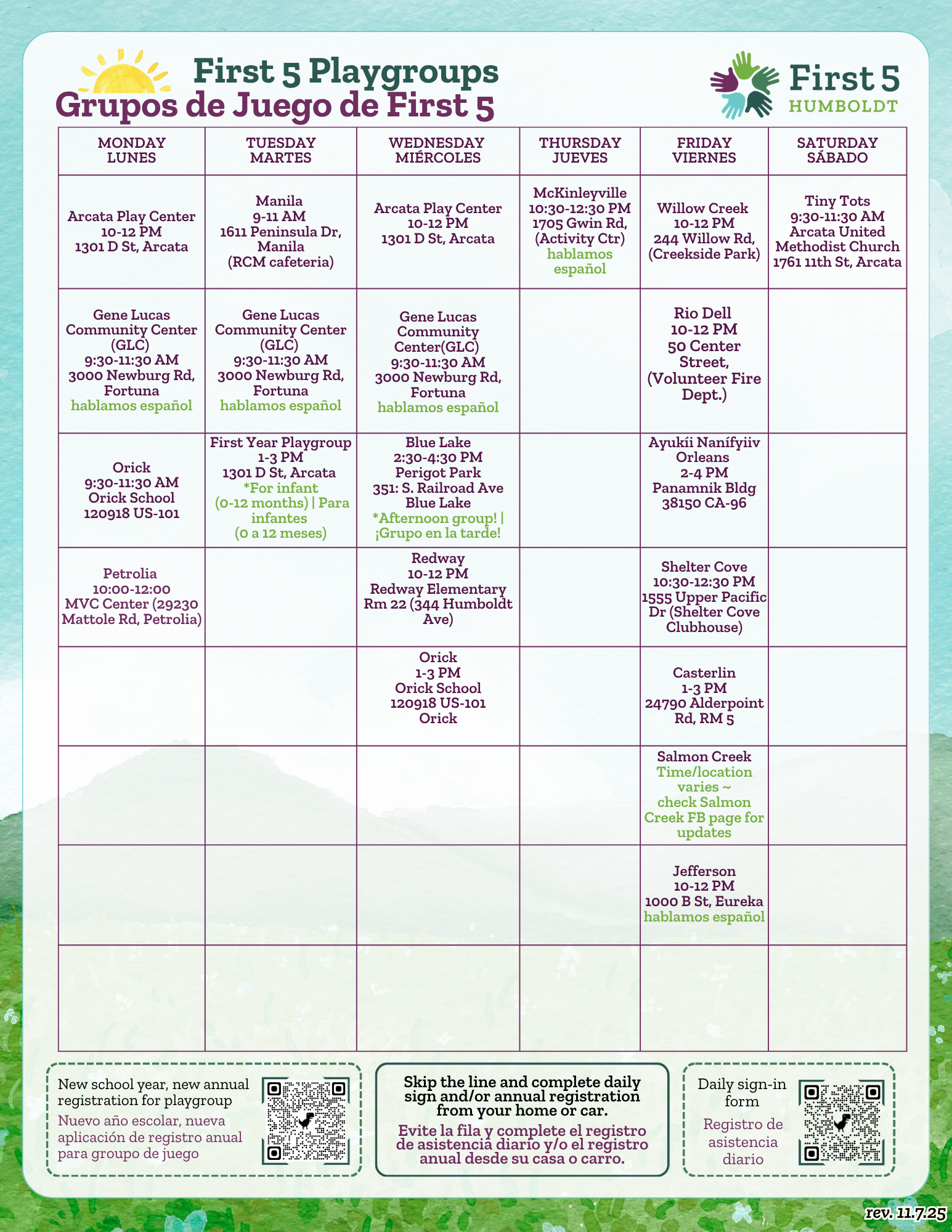 ***Starting September 1, all families—new and returning—are required to complete an annual registration form for the 2025–2026 fiscal year. This form only needs to be completed once per year and will apply to all playgroup sites.